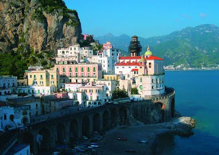 The Amalfi Coast, Italy (la Costiera Amalfi tana) is a breathtaking 35-mile stretch of mountainous coastline situated on the Sorrento peninsula, just south of Naples, in the region of Campania. Considered one of the most beautiful coastlines in the world, it is characterized by very steep, rocky hillsides plunging dramatically into the Mediterranean Sea. Precariously perched on these hills are charming old fi shing villages. Around every turn of this “road of a thousand bends”, one catches a new view of the seaside more spectacular than the last. Across the water lies the Isle of Capri, or the Blue Island. The Isle of Capri is renowned the world over as an exclusive holiday destination.